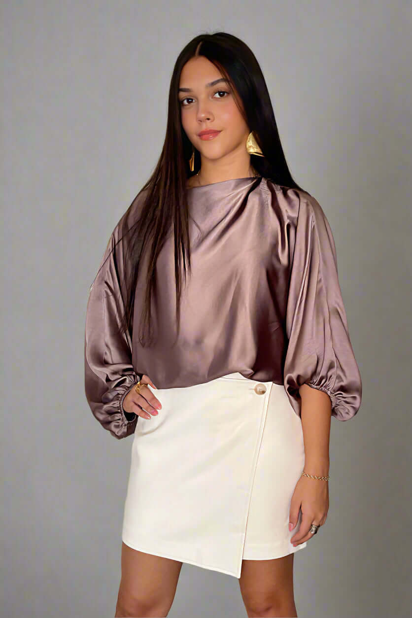 From the office to the party this is the cutest choice, introducing the Soley Top. Designed with a boat neckline and an elastic cinch waist.