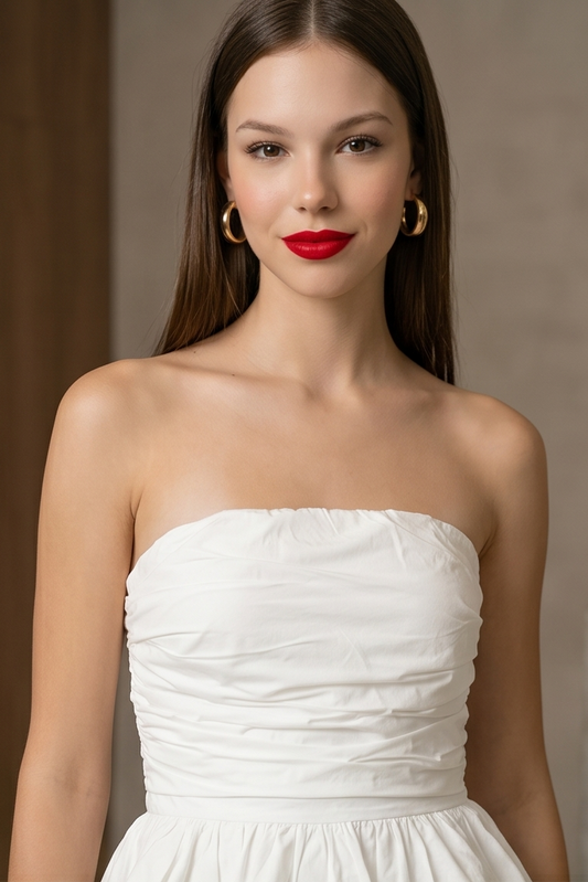Luna Two-Piece Set – Strapless Peplum Top & Structured Tailored Shorts