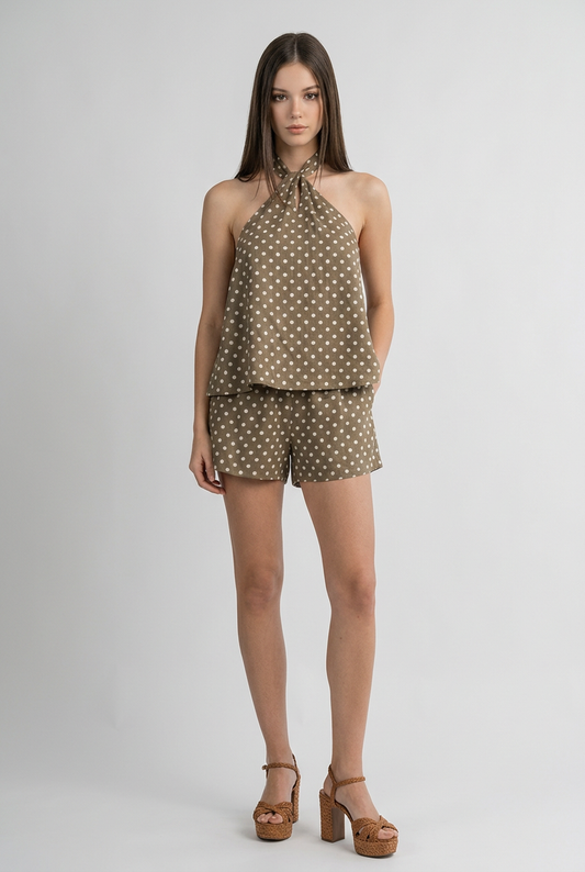 Aria Two-Piece Set – Polka Dot Halter Top & High-Rise Shorts